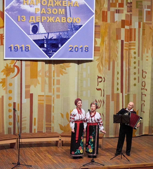 А подарунком для прекрасної половини працівників бібліотеки став чудовий концерт. Своїм іскрометним виступом їх порадував лауреат всеукраїнських конкурсів і фестивалів, народний аматорський хор «Оболонь» під художнім керівництвом О.О. Свердюка. І майже дві години лунали зі сцени українські пісні – народні й сучасні, і ліричні, і веселі, й театралізовані, виконані з високою майстерністю.