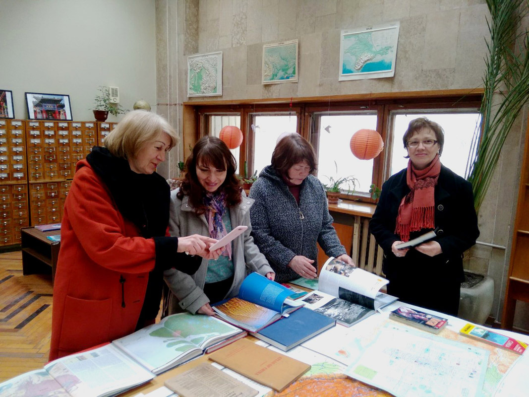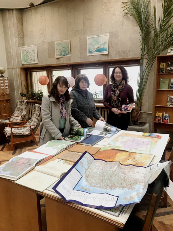 26 березня сектор картографічних видань відділу комплексного бібліотечного обслуговування НБУВ відвідали вчителі географії ліцею «Голосіївський» № 241 міста Києва, під керівництвом яких ліцеїсти неодноразово перемагали у всеукраїнських конкурсах і олімпіадах з географії.