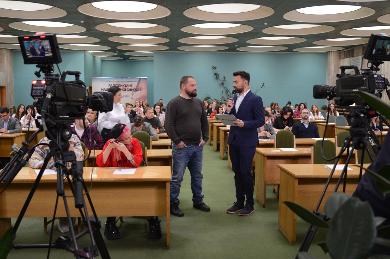 В означений час розпочалося включення з Національної бібліотеки України імені В.І. Вернадського, яка стала основною локацією для написання радіодиктанту і де працювала виїзна студія з ведучим відомим журналістом Романом Колядою. Всі бажаючи перевірити свої знання української мови зібралися в просторому зручному залі електронних ресурсів бібліотеки.