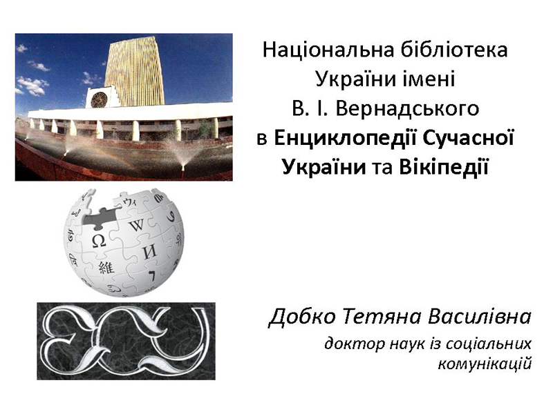 Про відображення опублікованих матеріалів про Національну бібліотеку імені В.І. Вернадського у Вікіпедії, Енциклопедії Сучасної України, Українській бібліотечній енциклопедії доповіли завідувачка відділу науково-бібліографічної інформації Тетяна Василівна Добко та учений секретар Інформаційно-бібліотечної ради НАН України Галина Іванівна Солоіденко. Було відзначено, що в Енциклопедії Сучасної України, Українській бібліотечній енциклопедії та Вікіпедії є багато гідних прізвищ як нинішніх, так і колишніх співробітників НБУВ. У той же час трапляється, що на сторінках в Енциклопедії Сучасної України Національна бібліотека України імені В. І. Вернадського представлена людьми, котрі внесли вагомий вклад в бібліотечну науку, але їхніх прізвищ чомусь немає в Українській бібліотечній енциклопедії, у Вікіпедії, або навпаки. І ці питання потребують синхронізації. Є також приклади того, коли співробітники НБУВ, посилаючись на різні причини, не бажають надавати даних про себе. Така позиція не є відповідальною, зазначили учасники обговорення, адже робота з інформацією до енциклопедій, до «Бібліотечного вісника» – вагомий внесок у популяризацію нашої установи та справи, якою займаються її співробітники.
