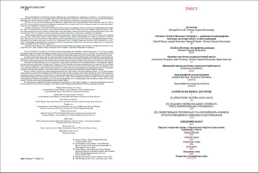 Справжній новорічно-різдвяний подарунок одержала перед святами наша Бібліотека. Її фонди поповнив щойно виданий чудовий фоліант – повне академічне видання масштабного історичного трактату, рукописної пам’ятки ХVII–ХVIII ст. – «Літопису» Самійла Величка, 300-річчя від народження якого відзначалось 2020 року. І це лише перший етап видання пам’ятки. У наступних томах передбачено оприлюднити корпус наукових коментарів, представити текстологічний аналіз рукопису, а також здійснити факсимільне видання.