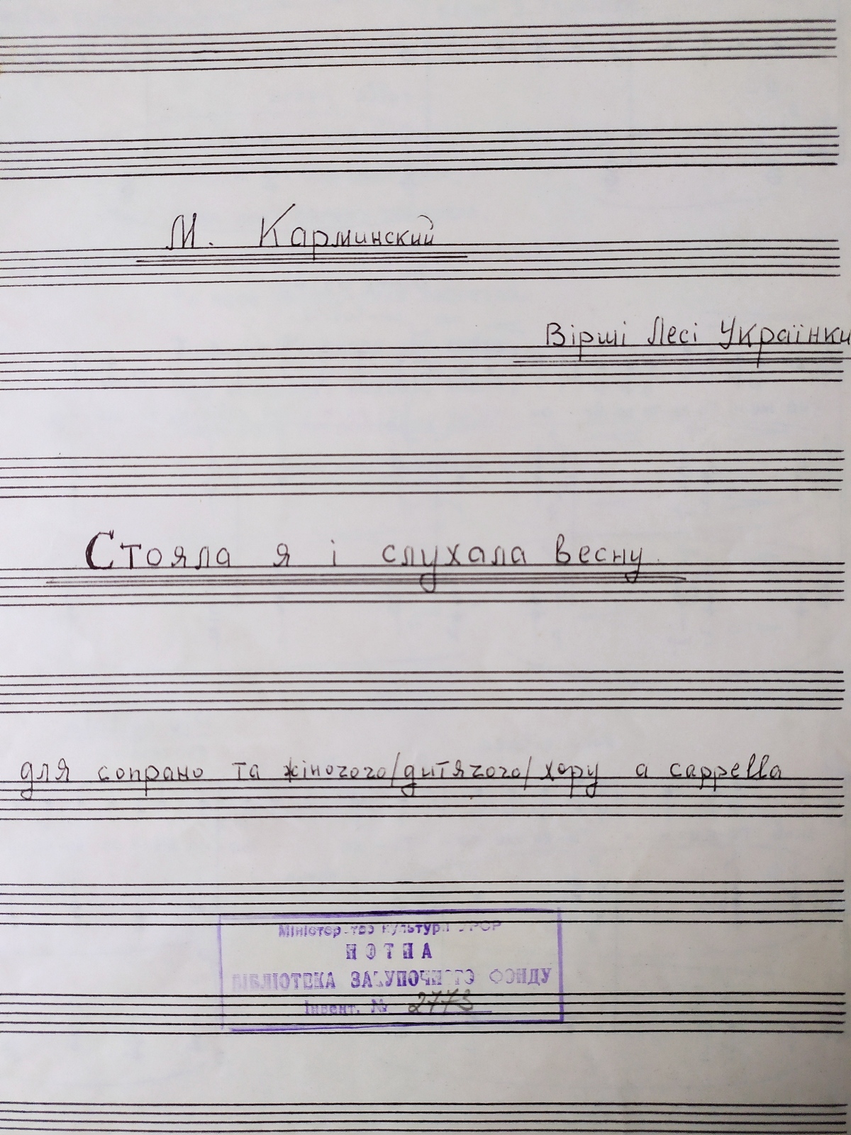 Найпопулярнішими музичними жанрами, вербальною основою яких є поезії Лесі Українки, стали вокальні жанри. У колекції «Музичний фонд України» зберігається репрографія з рукопису кантати-реквієму «Невольничі пісні» (в 7-ми ч.) Володимира Рунчака. У вище згаданій колекції представлено і жанр хорової мініатюри автографами Марка Кармінського та Віктора Пацукевича (Іл. №№ 20–21), а також великою кількістю одиниць збереження у загальному фонді відділу, серед яких і рідкісні видання хорових творів Василя Безкоровайного (Іл. №№ 22–23), Кирила Стеценка (Іл. № 25), Сергія Яременка (Іл. №№ 24) та ін.