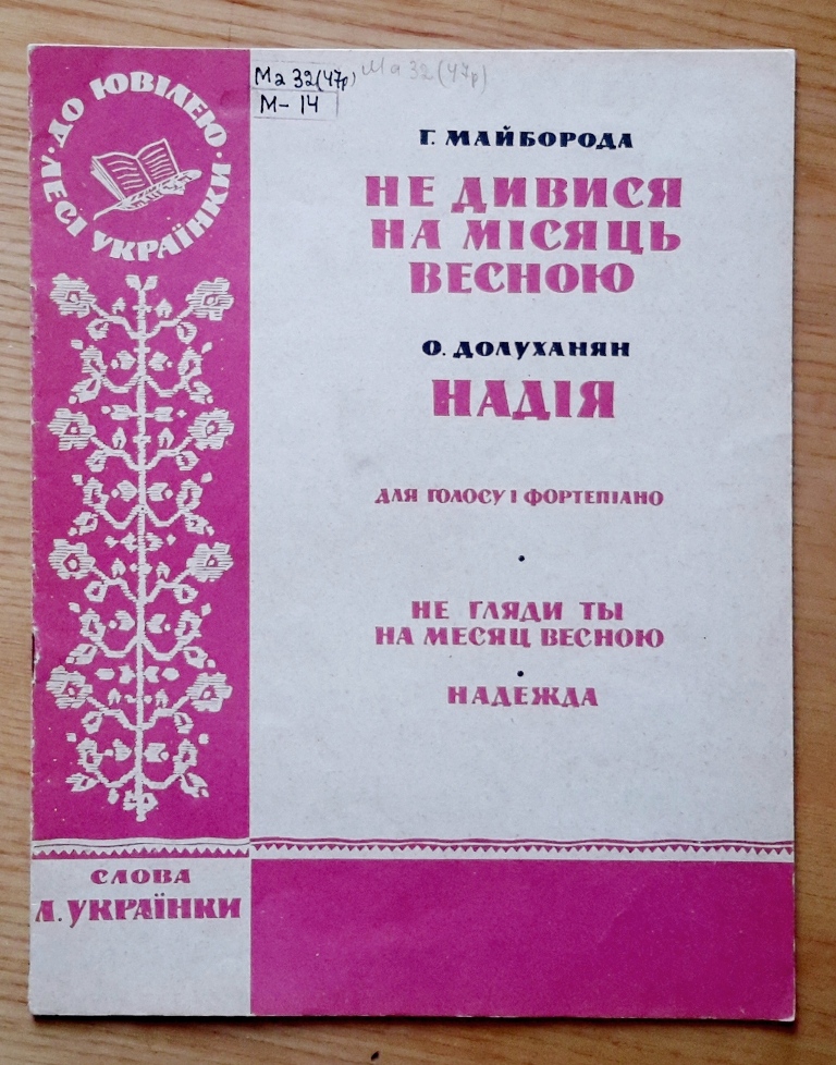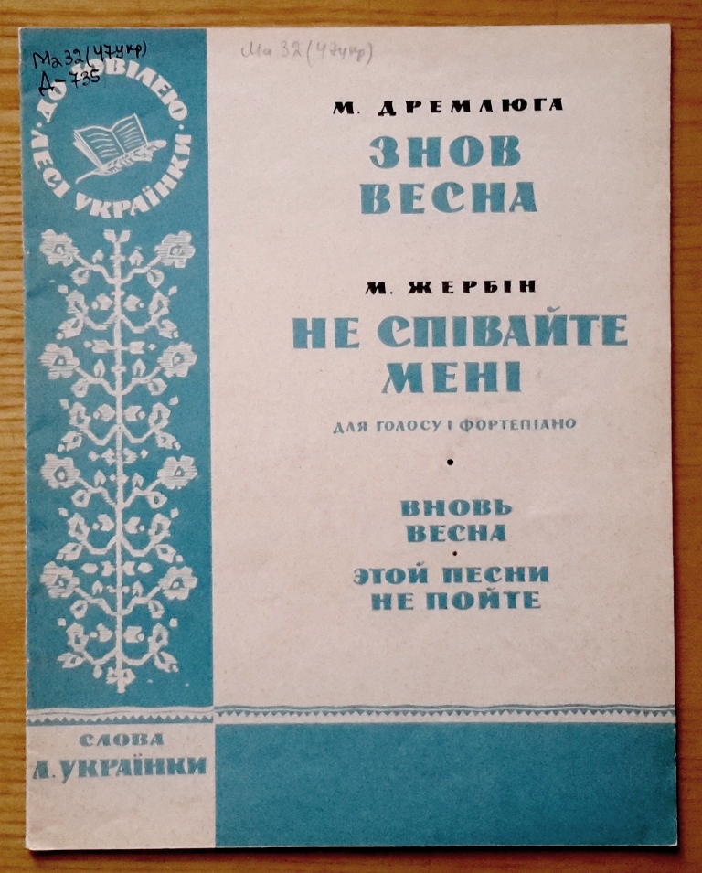 Вокальні жанри представлені також численними піснями та романсами, вокальними циклами (Іл. №№ 26–43). В серії «До 50-річчя з дня смерті Лесі Українки» (15 випусків) представлено пісні та романси Миколи Лисенка, Кирила Стеценка, Григорія Майбороди, Юрія Іщенка та ін., а також вірменського композитора Олександра Долуханяна. Усі тексти в цій серії видань подано мовою оригіналу та у перекладі російською (Іл. №№ 44–51). Мелодійність мови, музичність образів та ідеї Лесі Українки приваблювали багатьох композиторів, а до деяких її віршів митці зверталися неодноразово. Понад десять музичних творів написано на тексти поезій «Мі: Колискова» (з поетичного циклу «Сім струн»), що починається словами «Місяць яснесенький…» (Іл. №№ 52–54).