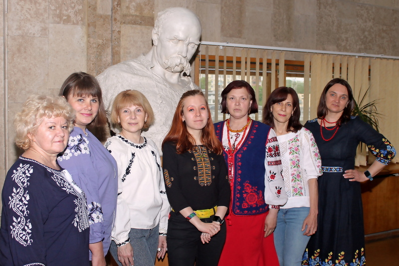 Однак це не вплинуло на наш святковий настрій і на бажання долучитись до великого українського загалу, вбравшись у барвистий, розмаїтих орнаментів одяг. Тож працівники НБУВ гідно відзначили це свято в обох приміщеннях – і на Голосіївському проспекті, й на вулиці Володимирській.