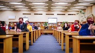 …Мова, як і світло, й повітря, летить-лунає, не знаючи кордонів, перепон і карантинів. Але вже другий рік ті, хто прагне відзначити День української писемності та мови і вшанувати пам’ять Преподобного Нестора-Літописця, об’єднавшись у спільному написанні радіодиктанту, змушені дотримуватись карантинних обмежень. Тому масковий режим та інші відповідні вимоги були забезпечені.