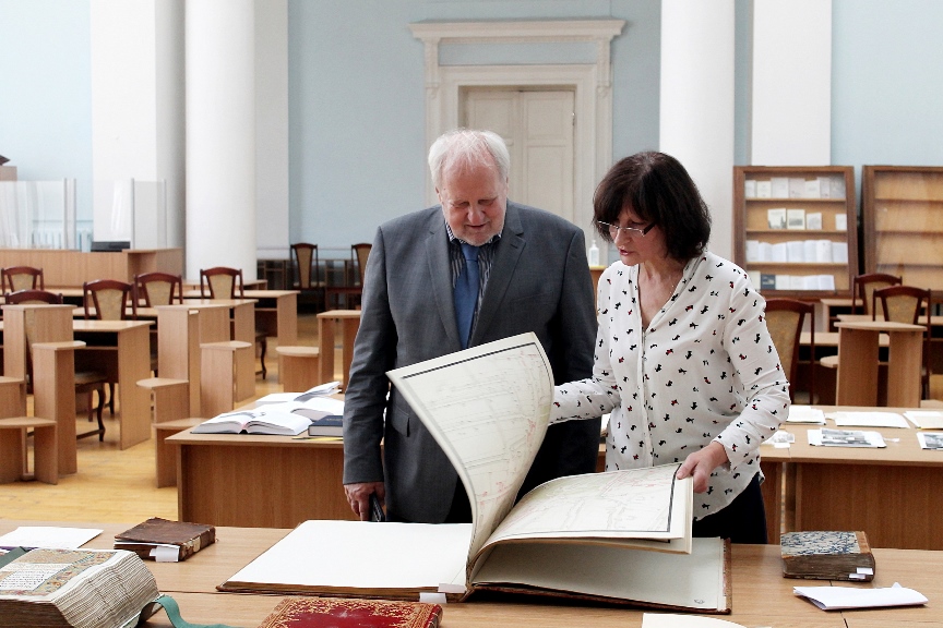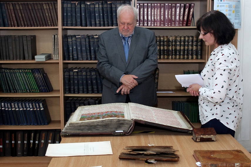Докладніше з раритетами Бібліотеки Єжи Душинський ознайомився у відділах Інституту рукопису та Інституту книгознавства, у тематичних експозиціях унікальних рукописів і стародруків, а також Інституту архівознавства НБУВ.