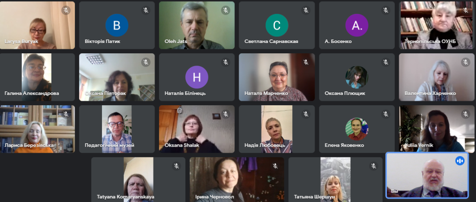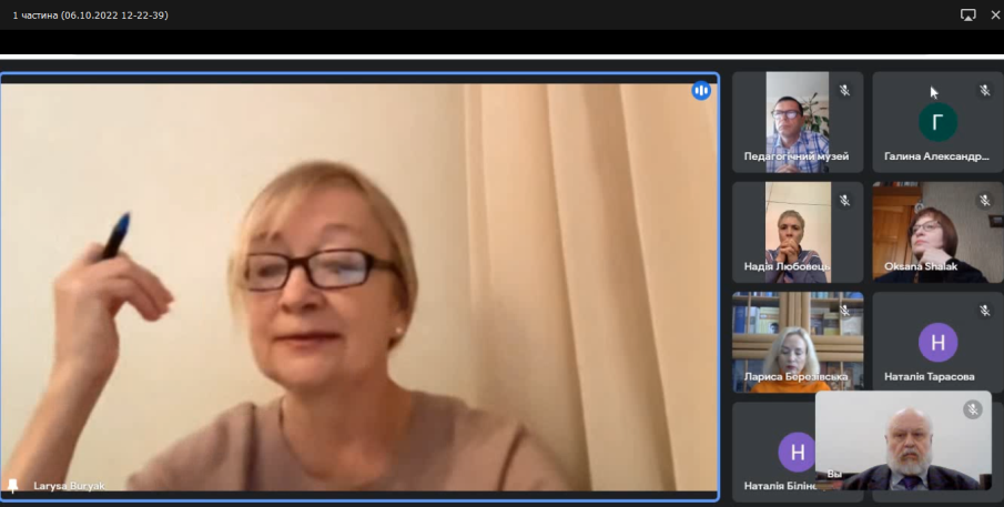Директорка Державної науково-педагогічної бібліотеки України імені В. О. Сухомлинського, докторка педагогічних наук, професорка, член-кореспондент НАПН України Л. Д. Березівська репрезентувала у свій доповіді досвід, здобутий у процесі розбудови й практичного використання з метою поширення педагогічного біографічного знання в освітньо-науковому просторі в умовах дистанційної освіти, відповідно до викликів пандемії COVID-19, а нині – російської агресії, і застосований у біографічних онлайн-проєктах, присвячених спадщині видатного українського педагога В.О. Сухомлинського, а також електронних ресурсах ДНПБ: «Видатні педагоги України та світу», «Ми стоїмо на плечах наших попередників: Видатні педагоги-ювіляри», «Педагоги України: пам’ятаємо, шануємо!». Створені ДНПБ онлайн-проєкти, присвячені українським і зарубіжним педагогам і освітянам, стали ефективною, дієвою формою поширення педагогічної біографіки, вони сприяють відновленню й збереженню національної педагогічної пам’яті.