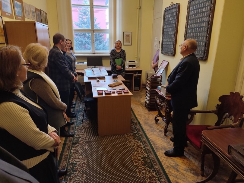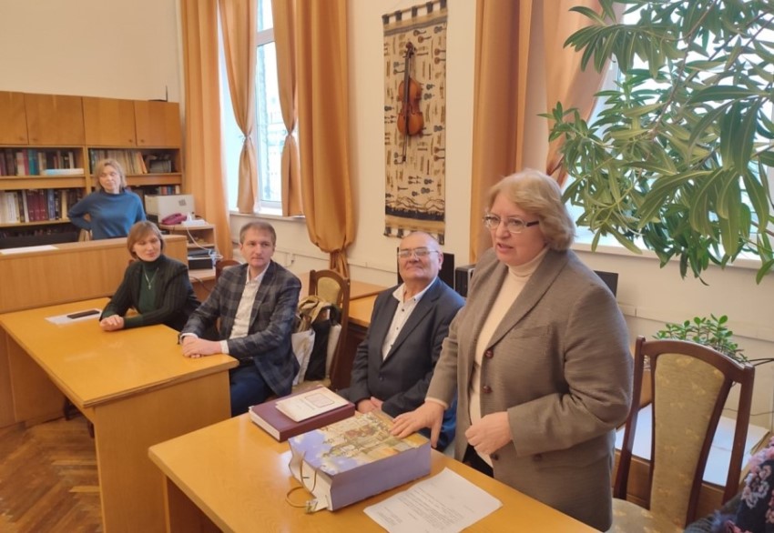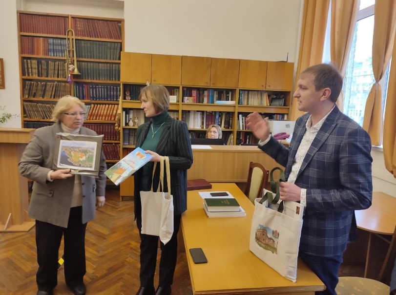 Начальник управління культурної політики і ресурсів Старокостянтинівської міської ради Олександр Афанасьєв подякував колективу НБУВ за теплу атмосферу й душевний прийом. Він звернув увагу на те, що їхнє місто має надзвичайно багату історію. І місцева влада робить усе можливе, щоб на нашій українській території підтримувались саме українські цінності, різноманітний власний продукт. Наприклад, 26 грудня у Старокостянтинові нагородили переможців щорічного конкурсу дитячих малюнків «Зимова листівка княжого міста 2022» - «Тобі, мій Воїне…». Усі малюнки стали відображенням нашого часу – складного, багатогранного, воєнного. У кожному присутня українська душа, яка боронить землю, дбає про неї, вірить у Перемогу. Малюнки, які здобули перші місця, були відтиражовані як унікальні вітальні іміджеві листівки. Підписані дітьми Старокостянтинівської міської територіальної громади листівки будуть передані через волонтерів захисникам України.