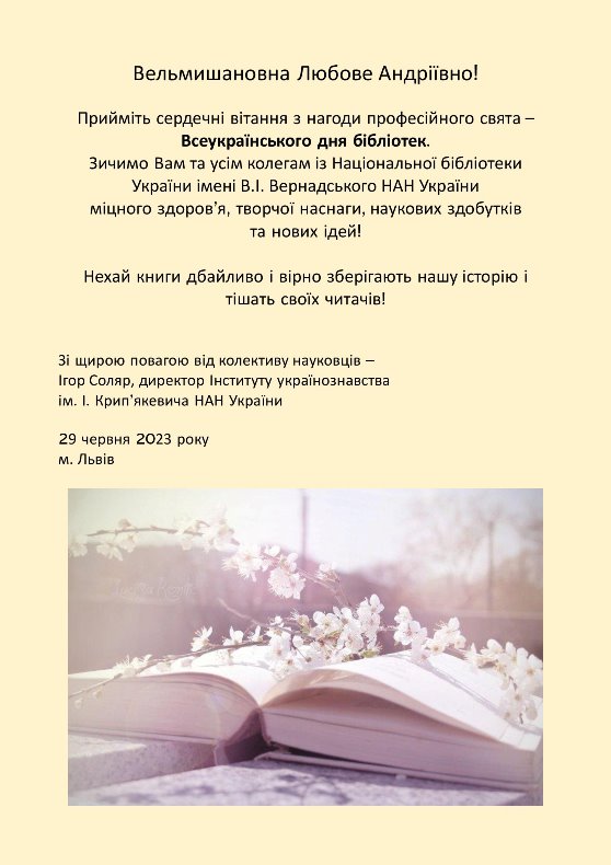 Привітання з нагоди Всеукраїнського дня бібліотек