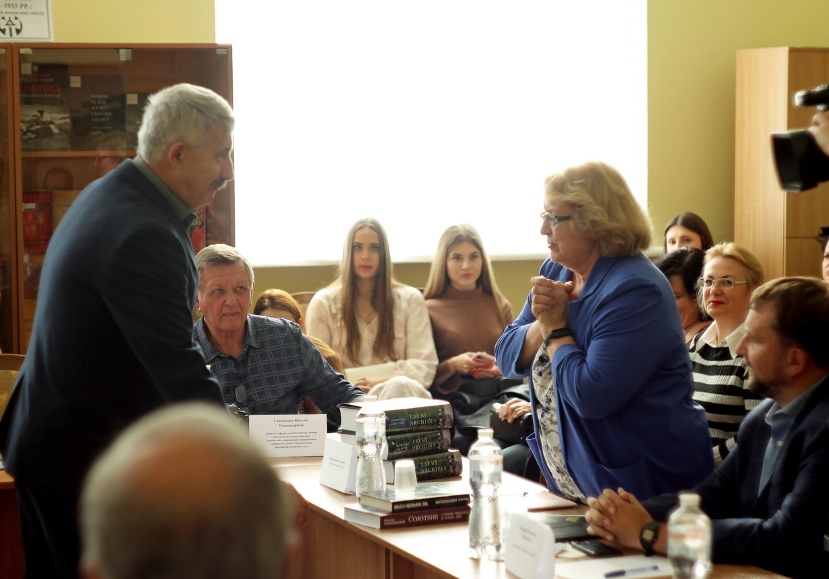 Підтримавши його, Любов Андріївна Дубровіна підтвердила велику цінність бібліотеки як інституції в сучасному інформаційному світі, її ролі в дослідництві минулого в ім’я розвитку майбутнього. Адже бібліотека акумулює в собі і знання, й історію, й духовність, це спадок тисяч і тисяч людей, які закладали історичний процес. Але бібліотека – не тільки книжки, рукописи, журнали, бібліотека – це сьогодні ресурси. Вона має портал, через який спілкується зі всім світом, обмінюється знаннями. Ось чому нам так важливо, підкреслила Любов Андріївна, мати електронні копії всіх фондів, серед яких є неоціненні. Через ресурси ми належимо світові, а світ належить нам. Будь-яка крапля правдивого, чесного знання про історію знаходить своє місце й у фондах, і у світовому знанні. І це надважливо для сьогодення й майбутнього.