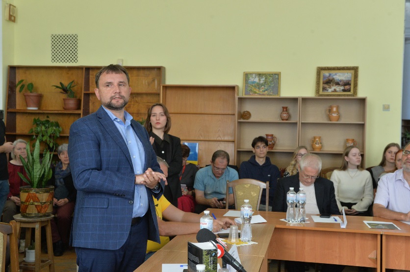 Володимир Михайлович В’ятрович, народний депутат України, науковець, історик, публiцист, полiтик, громадський дiяч презентував присутнім свою нову книгу V. Viatrovych, L. Luciuk. Enemy Archives. Soviet Counterinsurgency Operations and the Ukrainian Nationalist Movement – Selections from the Secret Police Archives, 2023 (Ворожі архіви. Радянські протиповстанські операції та Український націоналістичний рух, 2023). Видання англомовне, співавтором Володимира В’ятровича є професор кафедри політичних наук Королівського військового коледжу Канади, доктор філософії Любомир Луцюк.