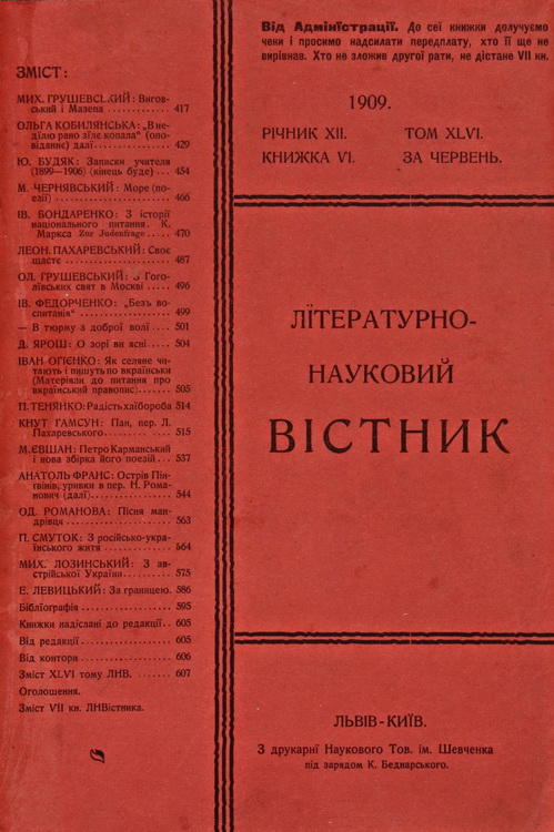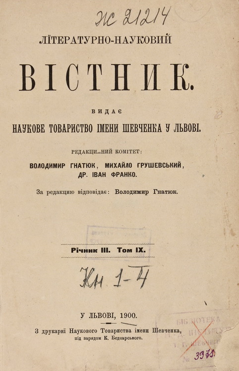 Володимир Гнатюк (1871–1926) опублікував у «ЛНВ» 50 наукових розвідок і понад 600 рецензій, оглядів.