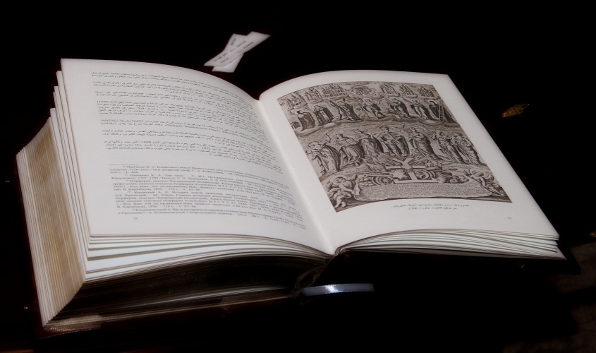 Національна бібліотека України імені В.І. Вернадського фактично теж є учасником цієї виставки, адже серед експонатів представлене видання унікального Мазепиного Євангелія. Ми вже розповідали про те, як свого часу посол України в Лівані Ігор Осташ дізнався, що у 1708 році в Алеппо було віддруковане коштом гетьмана Івана Мазепи Євангеліє арабською мовою. У світі відомо лише про кілька збережених примірників цього Євангелія. І один з них – так званий київський – дипломат знайшов у фондах Національної бібліотеки України імені В.І. Вернадського, арабською мовою, з гербом Івана Мазепи. Після спільної роботи з фахівцями НБУВ та видавцями було підготовлено до друку й виготовлено факсимільну копію Євангелія. Відтворено такою, як була в оригіналі, й шкіряну палітурку з тисненням золотом.