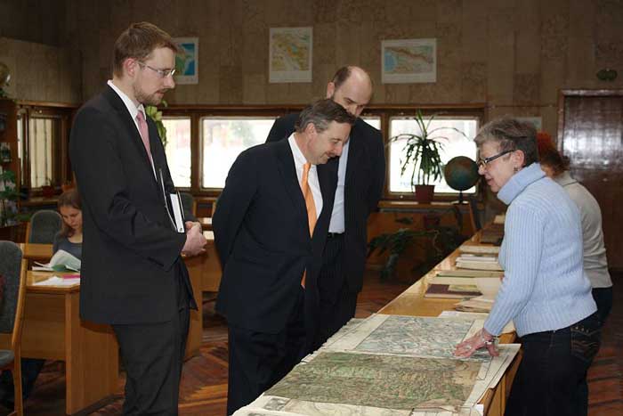 Надзвичайний і Повноважний Посол Німеччини в Україні Ганс-Юрген Гаймзют відвідав Австрійську бібліотеку НБУВ, оглянув книжково-інформаційну виставку "Веніамін Кордт — історик, бібліограф, дипломат, історіограф та його час і оточення", виставку картографічних видань "Картографічні твори з фондів Національної бібліотеки України імені В. І. Вернадського ХVIІ — ХХ століть" (до 150-річчя від дня народження фундатора історичної картографії Веніаміна (Христофора Іоганна) Кордта) та книжкову виставку "Німці України: історія, культура, мова" (підготовлену до Дня рідної мови).