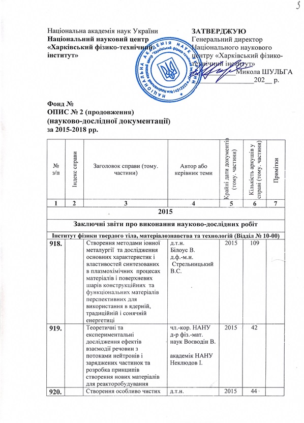 Після розгляду пропозицій експертних комісій академічних установ рішенням ЕПК НАН України від 14 лютого 2024 року до складу Національного архівного фонду було включено 1356 справ документів з науково-дослідної, науково-організаційної та управлінської діяльності 15 установ НАН України, серед яких: Національний науковий центр «Харківський фізико-технічний інститут», Інститут відновлюваної енергетики, Інститут технічної теплофізики, Інститут геологічних наук, Інститут проблем кріобіології і кріомедицини, Український степовий природний заповідник, Луганський природний заповідник, Інститут політичних і етнонаціональних досліджень імені І. Ф. Кураса, Інститут літератури імені Т. Г. Шевченка та інші.