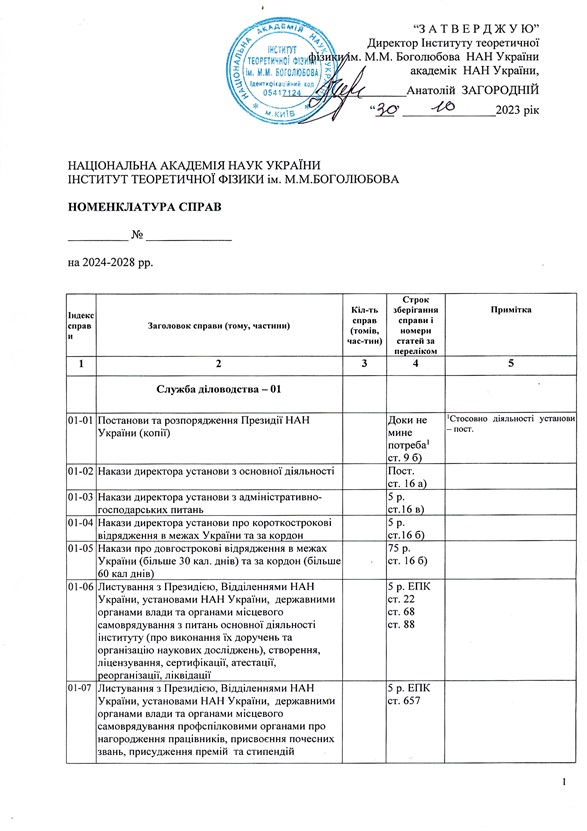 Також було погоджено 16 індивідуальних нормативних документів 7-ми академічних установ з питань діловодства і архівної справи, серед яких: інструкції з діловодства (8), номенклатури справ (5), положення про експертні комісії установ (3).