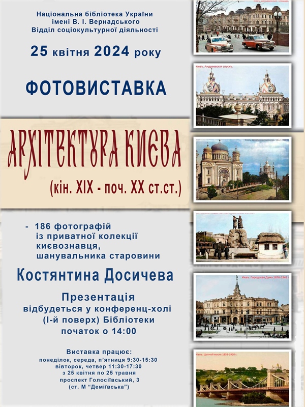 25 квітня 2024 року о 14: 00 у конференц-холі Головного корпусу Національної бібліотеки України імені В. І. Вернадського відбудеться презентація фотовиставки