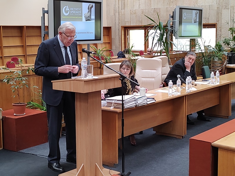 Ряд керівників наукових установ взяли участь у обговоренні питань та виступили з доповідями. Учасники зібрання обговорили доповідь В.А. Смолія, виступи і затвердили результати наукової роботи установ Відділення історії, філософії та права НАНУ за 2023 рік.