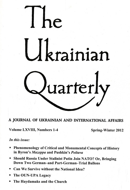 Bohdan Bochan: “Phenomenology of Critical and Monumental Concepts of History in Byron’s Mazeppa and Pushkin’s Poltava”, in: “The Ukrainian Quarterly” – A Journal of Ukrainian & International Affairs – since 1944, Vol. LVXIII, Nr 1- 4, Spring-Winter 2012, рр. 6-32, New York – USA.