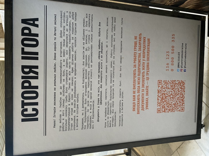 Фотовиставка представляє 8 великих папок, які стоять на підлозі та можуть відкриватися. На першій сторінці папки – світлина людини у звичайній ситуації. А у розгорнутому вигляді папка представляє наче доповнену реальність – ця ж особа опинилася в ситуації обману й торгівлі людьми. Далі можна побачити опис історії, заснований на реальних випадках, щодо яких надходили звернення на Національну гарячу лінію з попередження домашнього насильства, торгівлі людьми та гендерної дискримінації. Розміщено також контакти цієї Національної гарячої лінії, куди людина може звернутись, якщо вона або її знайомі опинились у подібних обставинах.