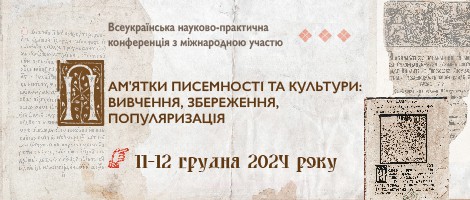 Подання тез доповідей – до 20 листопада 2024 року, з позначкою: конференція «Пам'ятки писемності та культури», на електронну пошту vrvr.onnb@gmail.com Збірник матеріалів, підготовлений за результатами конференції, буде оприлюднено на офіційному сайті ОННБ.