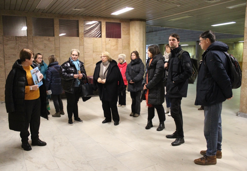 Любов Дубровіна ознайомила гостей з історією заснування бібліотеки, що сягає витоками в далекий 1918-й рік, а з квітня 1996 року указом Президента України має статус національної установи. Вона також розповіла про архітектурно-декоративні особливості центрального корпусу НБУВ. Зокрема, унікальними тут є монументально-декоративне панно «Біль землі», що розташоване в центральному вестибюлі, основною темою якого є розкриття головного призначення науки – захисту життя на Землі, а також спеціально виготовлений для НБУВ гобелен «Витоки слов’янської писемності».