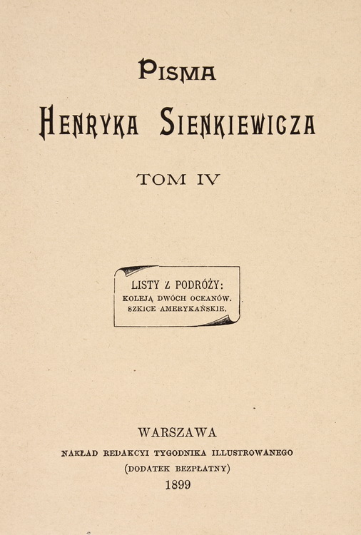 Впродовж 1876–1879 рр. Генрик Йосифович мандрував США, після чого опублікував «Листи з подорожі» (1876–1878). Американські враження знайшли відображення в його промовистих оповіданнях «Орсо», «Сахем», «За хлібом». Після повернення до Європи він деякий час жив у Парижі, у 1879 р. відвідав Львів, потім побував у Венеції та Римі. Загалом часто подорожував, багаторазово змінював місце проживання (Австрія, Англія, Італія, Литва, Франція, Швейцарія, Румунія, Болгарія, Туреччина, Греція, Єгипет і Занзібар).