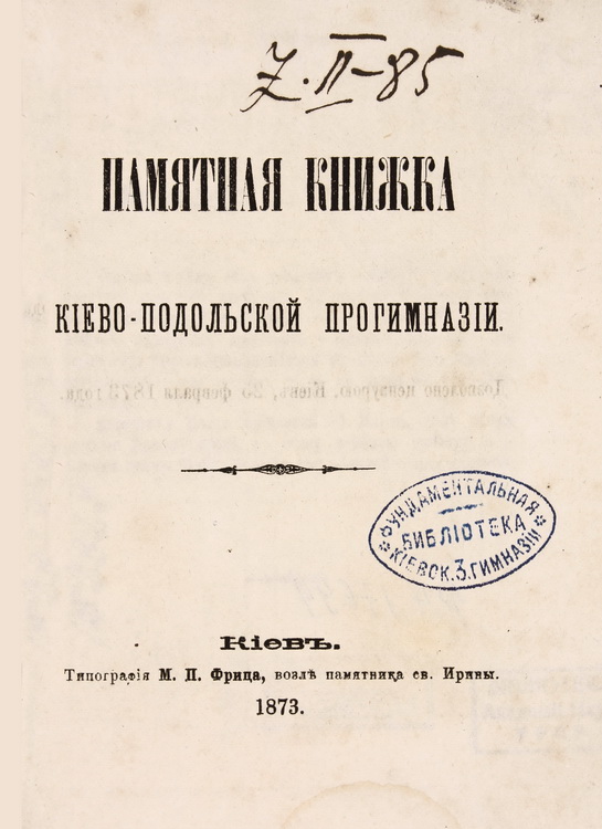 Періодичні видання: «Журнал Министерства народного просвещения», «Православное обозрение», «Русский вестник», «Вестник Европы», «Вестник иностранной литературы», «Русская школа», «Вестник опытной физики и элементарной математики», «Вопросы философии и психологии», «Филологическое обозрение», «Archiv für slavische Philologie», «Статистический временник Российской империи» (Санкт-Петербург, 1878), «Сборник отделения русского языка и словестности императорской Академии наук» (Санкт-Петербург, 1875); «Временник императорского Московского общества истории и древностей Российских» та ін. Загальна кількість примірників, що зберігається у відділі бібліотечних зібрань та історичних колекцій, перевищує 1 200 од. зб.