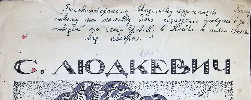 …На титулі цього видання є дарчий напис автора –– видатного українського композитора Станіслава Людкевича: «Високоповажному Академіку Орденоносцеві Кримському на пам’ятку його незабутніх виступів в Київі в лютому 1941 р. від автора». Ймовірно, що цей запис здійснено композитором під час святкування 70-річного ювілею Агатангела Кримського та з нагоди вручення йому ордену Трудового Червоного Прапора.