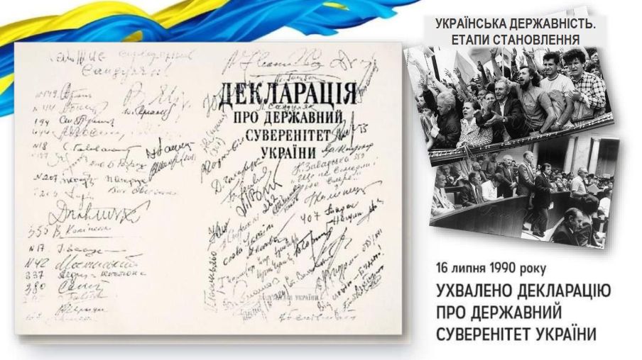 Цей історичний документ часів пізнього СРСР проголосив суверенітет України як верховенство, самостійність, повноту і неподільність влади республіки в межах її території, незалежність і рівноправність у зовнішніх відносинах. Декларація стала важливим кроком на шляху до незалежності. Базові положення цього документа згодом стали основою законодавчих актів державного значення – Конституції та законів України.
