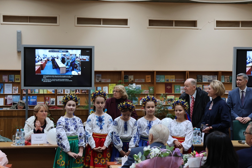 Почесний генеральний директор Національної бібліотеки України імені В.І. Вернадського, радник Президії Національної академії наук України, академік НАН України, заслужений діяч науки і техніки України Олексій Семенович Онищенко вручив Любові Андріївні адрес-вітання і грамоту Інформаційно-бібліотечної ради НАН України.