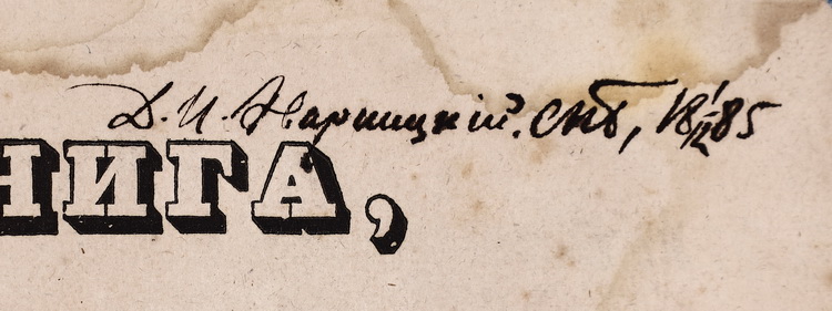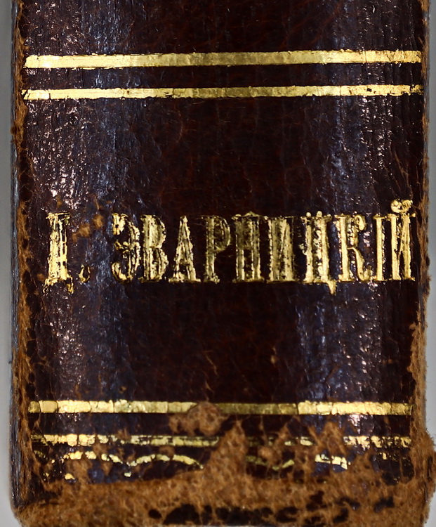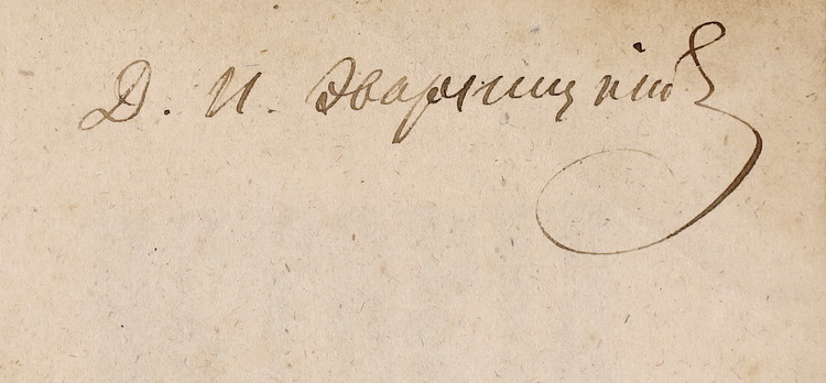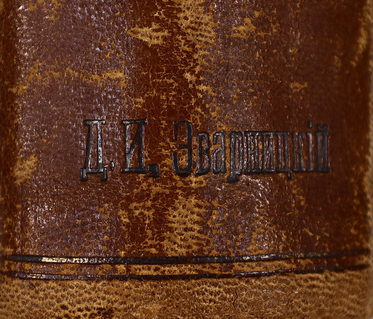 Деякі книги мають авторську оправу з суперекслібрисами внизу на корінці книги : «Д. И. Эварницкий» або «Д. Эварницкий». Тобто ці авторські оправи деяких книжок зроблені до 1905 року — часу, після якого Дмитро Іванович вже підписував своє прізвище на український лад «Яворницький». Деякі книги мають власницькі знаки інших людей. Наприклад, на популярній книзі німецького педагога та історика XIX ст. Карла Фрідріха Беккера «Всемирная история» наявна печатка «Изъ Библіотеки Василія Левицкого» та суперекслібрис у вигляді тиснення його ж ініціалів на корінці «В. Л.». На першій книзі (т. 3) «Северо-Кавказ. краевое общество археологии, истории и этнографии» присутній дарчий напис від відомого краєзнавця, історика, археолога, засновника Ростовського краєзнавчого музею Михайла Борисовича Краснянського: «Уважаемому Дм. Ив. Эварницкому от М. Б. Краснянского, из Ростова н/д 1927». Є також дарчі написи від історика та публіциста Дмитра Івановича Іловайського та ін.