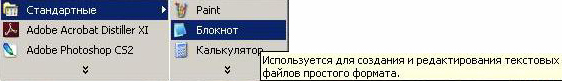 Програма «Блокнот» розташована в меню «Пуск» - > «Стандартні» - > «Блокнот».