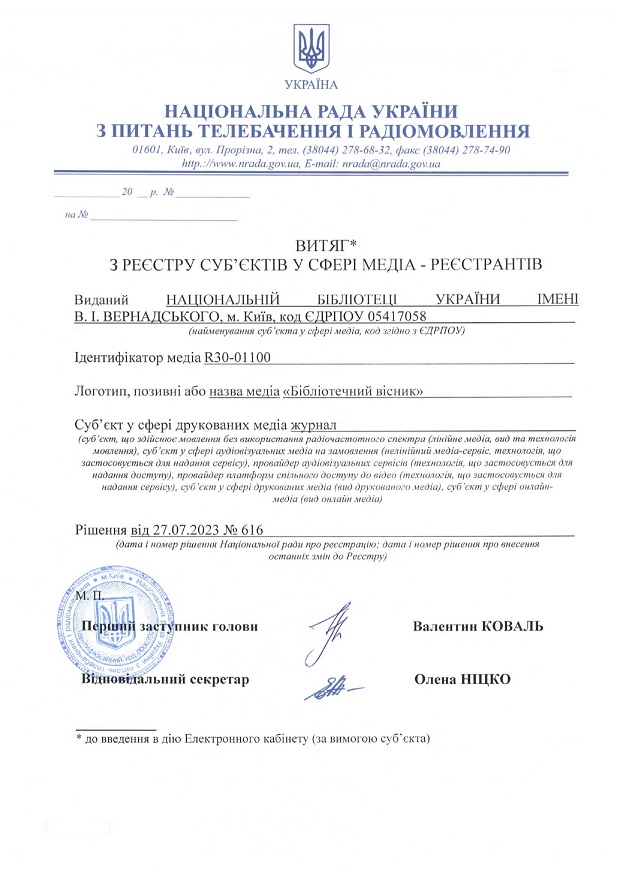 2013 - 2026 Національна бібліотека України імені В. І. Вернадського